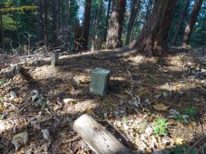 | 三角点は左へ進んだ先でした。パッとしない山頂で立ったまま一服 山頂から南への尾根にも踏み跡は続いていたが